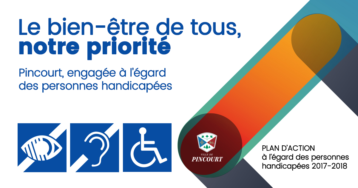 La Ville de Pincourt s’engage à favoriser la qualité de vie de l’ensemble de ses citoyens, et ce, en diminuant les obstacles vécus par les personnes ayant des incapacités et en facilitant l’accessibilité à ses édifices municipaux et à ses activités.
